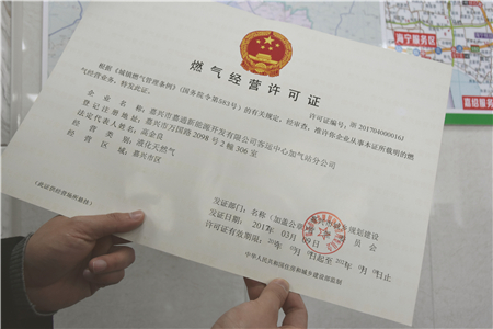 3月9日,嘉興客運中心LNG加氣站正式獲得由嘉興市城鄉(xiāng)規(guī)劃建設管理委員會核發(fā)的“燃氣經(jīng)營許可證”,標志著客運中心LNG加氣站正式對外投入運營,這也是嘉興市區(qū)范圍內(nèi)第一張LNG加氣站燃氣經(jīng)營許可證。